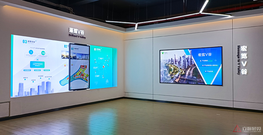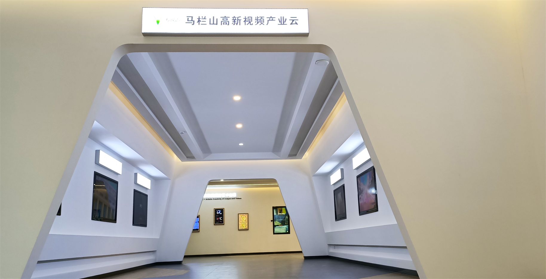 該項目的主要設(shè)計元素為數(shù)字科技的 “云”,瀏陽河畔的 “水”。馬欄山作為中國視頻文化產(chǎn)業(yè)的風向標,是文化和科技的集中交融之處,智慧之云激蕩著她的精魂體魄,未來之子孕育在她的腹中。而她自身又處在瀏陽河的第八道灣懷中,湖湘之水蜿蜒而過,勾勒出她 “V” 字形的身姿曲線。我們通過在有效的布展空間內(nèi),充分利用聲、光、電等現(xiàn)代新媒體技術(shù),創(chuàng)造兼具湖湘地域文化和科技創(chuàng)新文化兩大特色的展示模式,為觀眾帶來新奇的審美藝術(shù)享受。