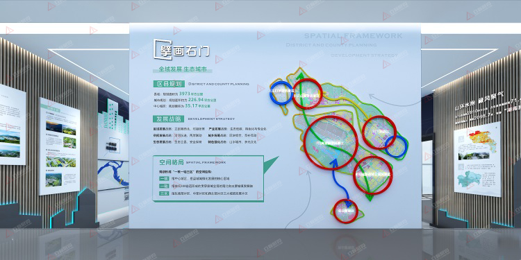 石門(mén)縣宛如一顆綠色的寶石鑲嵌在湖南北部,東南毗連八百里洞庭湖,西接武陵山脈,和國(guó)家森林公園張家界為鄰,雄居縣境北部的壺瓶山與湖北神農(nóng)架互為依托,享有“武陵門(mén)戶(hù)”與“瀟湘北極”之稱(chēng)的美譽(yù)。我司以印象石門(mén)、擘畫(huà)石門(mén)、筑夢(mèng)石門(mén)為三大主題,通過(guò)規(guī)劃展示廳這一窗口,讓訪客了解發(fā)現(xiàn)石門(mén)萬(wàn)象。展示廳貫穿石門(mén)的山、水、城、文等宜游宜居城市特質(zhì)元素,浸透著“澧濱晨曦,山水石門(mén)”的氣質(zhì)。