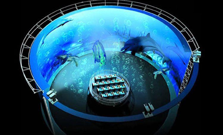 環(huán)幕的投影幕弧度為360度全封閉無縫拼接的影院。一般我們會在圓形空間中央設置環(huán)形看臺,這樣參觀者可以從任何角度都可欣賞環(huán)幕影片,非常有代入感,仿佛人們都融進影片的場景之中。環(huán)幕的沉浸感是否強烈關鍵在于數(shù)字影片的創(chuàng)意和鏡頭運動產生的畫面代入感和立體感的強弱。往往適合表現(xiàn)具有宏觀大場景,多場景的內容。