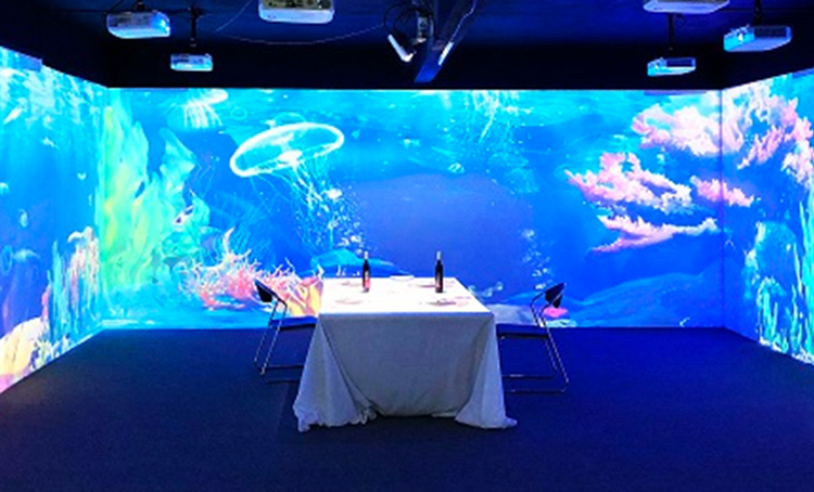 CAVE是一種基于投影的沉浸式虛擬現(xiàn)實顯示系統(tǒng),其特點是:分辨率高,沉浸感強,交互性好。CAVE沉浸式虛擬現(xiàn)實影院是由3個以上的投影墻面組成的高度沉浸的虛擬演示環(huán)境,配合三維技術,可以讓參觀者身處一個三維立體的的沉浸空間中,給參觀者帶來具有震撼的視覺效果,身臨其境的沉浸感受。它適用于任何具有沉浸感需求的虛擬仿真應用領域,不同類型的展廳展館。比如虛擬設計與制造、虛擬生物醫(yī)學工程、軍事模擬指揮、地震及消防演練仿真、虛擬演示、模擬訓練、建筑視景與城市規(guī)劃等。