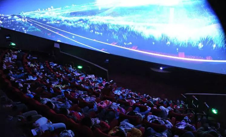 球幕影院又稱圓宆電影和球幕電影,拍攝及放映均采用超廣角魚眼鏡頭,觀眾廳為圓頂式結構,銀幕呈半球形,觀眾被包圍其中,觀看銀幕如同蒼穹。球幕電影獨特的觀看視角和播放空間,使其呈現(xiàn)出不同一般的震撼視感。一般應用于各類博物館、科技館當中,展示宇宙洪荒、神秘星空、生命個體的演變。